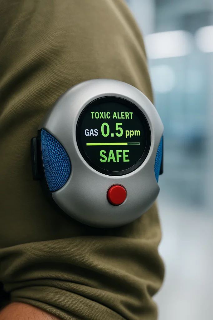 In the long run, toxic gases and particulate matter are considered to be dangerous to human health long before visible symptoms can be felt. In dealing with this silent but real danger, we came up with Toxic Alert, a small, portable gadget, mounted inconspicuously on any clothing, which measures the composition of the ambient atmosphere, evaluates the vital signs parameters, and gives relevant warnings in case of the detection of poisonous gases. Its simplistic design makes it user-friendly, practical protection in real life.