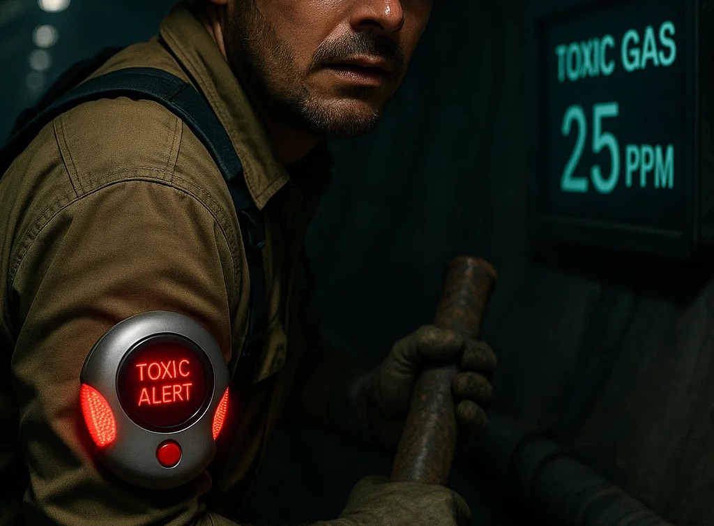 Toxic Alert is placed in the background of clothing to put the user out of danger from undetected dangers. The device measures toxic gases, constantly measures the main vital indicators, and sends instant notifications without the need to install it.